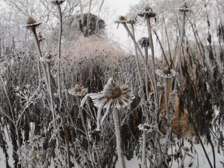 Eens alle bloemen uitgebloeid zijn, net voor de winter, ruim je alles op en leg je de grond klaar voor de volgende lente. Je kan er echter ook voor kiezen om de planten te laten staan tijdens de winter want de uitgebloeide bloemen zijn een schuilplaats en een bron van voedsel voor insecten en vogels. Jouw tuin ziet er minder strak uit tijdens de winter maar je helpt er de biodiversiteit wel een handje mee vooruit.
